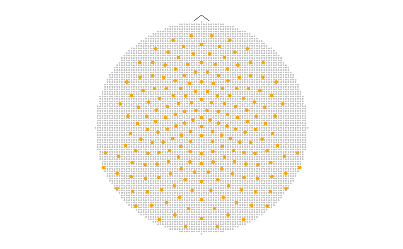# Plotting 2D circle point mesh with sensors from epochdata as orange points